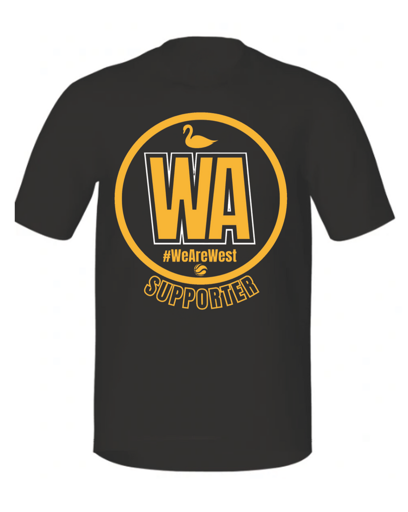 Black Cotton T-Shirt with Western Australia 2023 State Team supporter logo on the front.